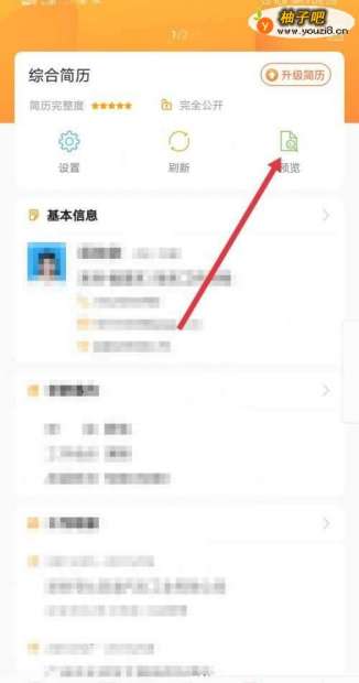 2这时候我们就进入到了我们的简历页面,在这里我们可以修改和设置我们的简历,我们先点击预览简历。