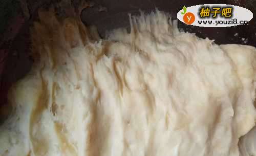 4然后将以上的两种面糊搅拌在一珠改帽起,放适量的盐和五香粉,让发面和烫面搅合均匀,然后放置巨材1~2小时醒面。
