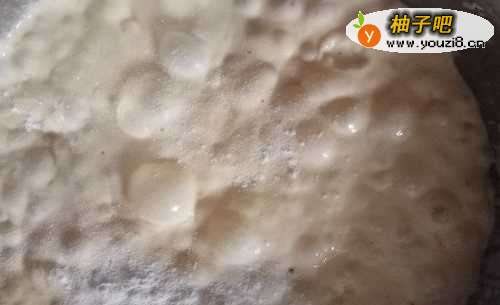 现将发酵粉用温开水(30度左右)化开后,放入面粉约350克,放纯净水将面粉搅拌成稠面糊,待发酵后(约3~4小时),放入小苏打0.3克。