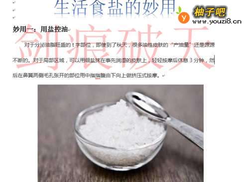 日常生活中,食盐的妙用一:在夏天的时候,皮肤油性比较大。我们可以使用食盐进行控油。主要内容如下。