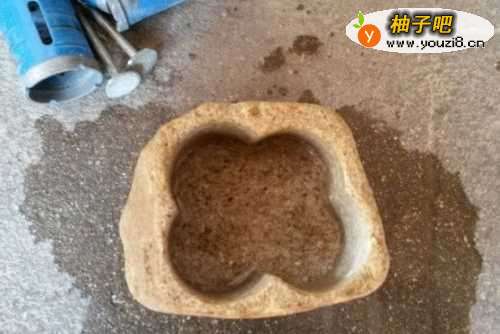5底部修整后,用水清洗一下,石头花盆开挖完成。这个是要做水培的,所以不需要底部挖透水孔。