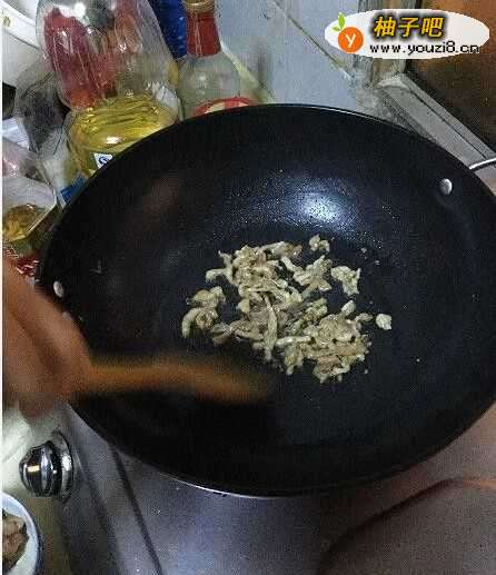 3肉切丝,可以在这里加瘦肉粉和酱油先调,也可以不用加瘦肉粉,炒肉的时候加点酱油就行了。