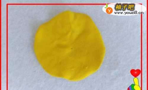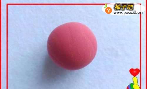 3将金黄色彩泥完全包裹在红色彩泥外面,然后反复揉搓,混合在一起(混合后,红色中要能看到点点的金黄色),滚搓成圆球状。