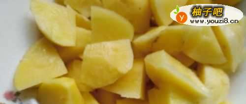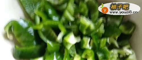 9分别把土豆块、茄子块、青椒块过油炸。土豆和茄子要多炸一会,青椒炸一下就捞出不要久了。