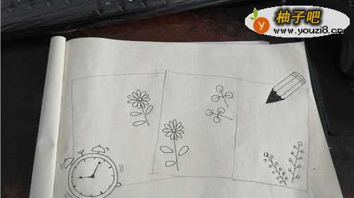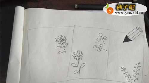 2在边框内,我们在画上几枝花,还有几只另样的花枝。