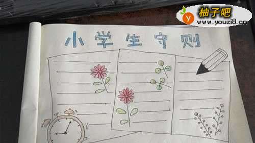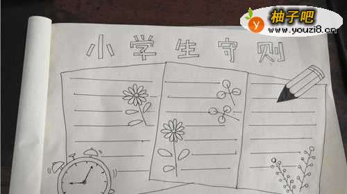 5然后再边框里边画上横线,在最上边写上小学生守则,如图。