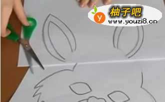 先用笔在硬纸板上画一只兔子脸、耳朵的模型。