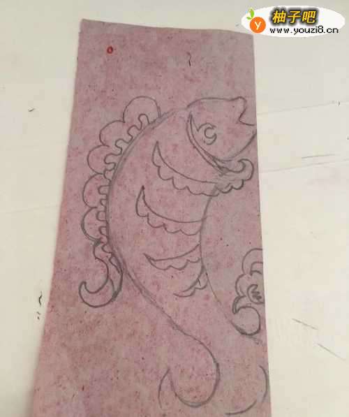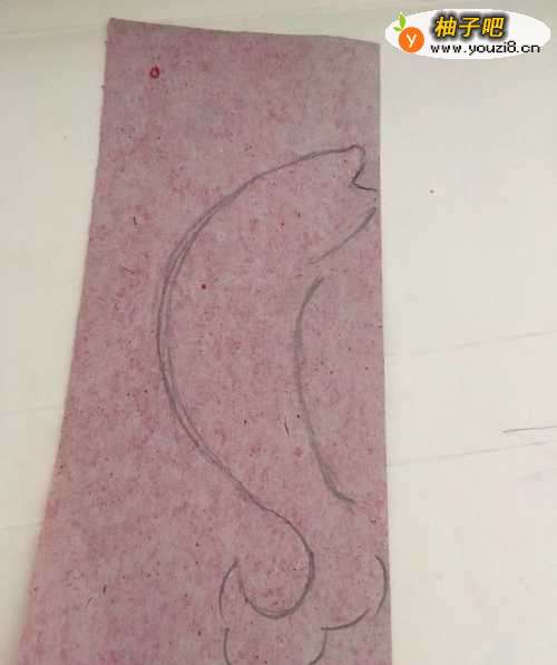 2第二步 折叠完之后 把它竖起来 双边在右 然后拿起绘图铅笔 画上一只鱼的全身草图外线轮廓