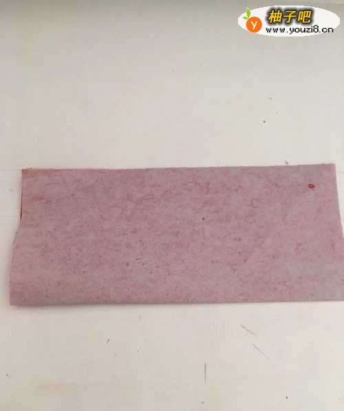 第一步 把一张16厘米X16厘米的正方形红色彩纸 从下向上对边折叠整齐