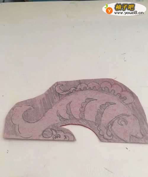 6第六步 剪完鱼的外围之后 再剪里面细致的地方 眼睛 背鳍 鱼尾 鱼鳞 修边等等 剪完之后 取开铺平 一双漂亮的卡通鱼图案就完成了