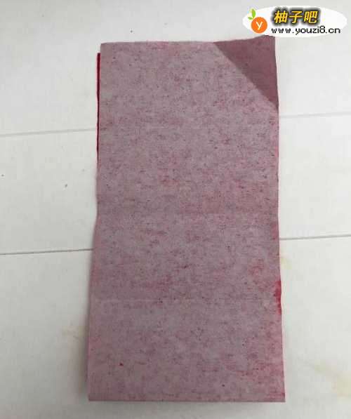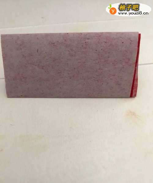 第一步 取一张20厘米长X8厘米的长方形红色彩纸 先把它竖起来摆放 然后再从下向上对边折叠整齐