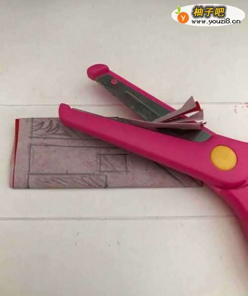 5第五步 都画完之后 再涂实一下小房子空白的部分 然后拿起手工剪刀开始裁剪 先剪去外面和周围多出来的彩纸