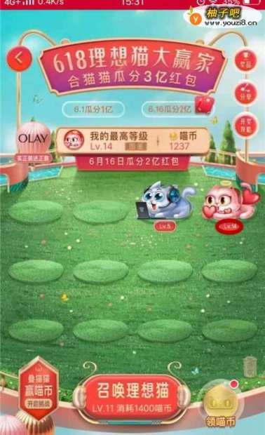 一年一度的激动人心的618年中大促又即将到来,淘宝天猫推出理想猫大赢家的活动。我们可以用喵币先召唤理想猫,再召唤同等级理想猫合成更高等级的理想猫,合成的等级越高,分得的金额越多。既能玩游戏,又能分,一起来看看它的具体玩法吧!