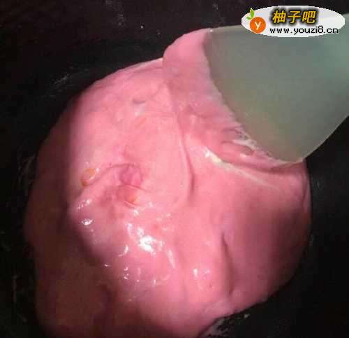 5直到奶粉完全融化后,加入准备好的炒花生米,使其均匀分布