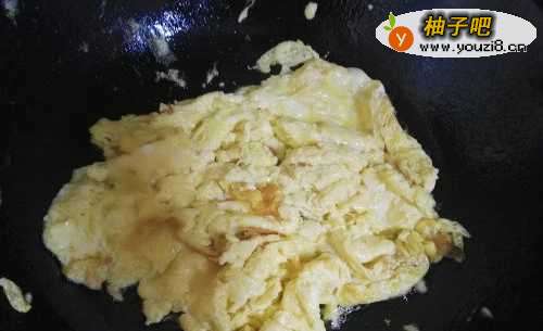2锅里加油,油温上来之后,加入鸡蛋。