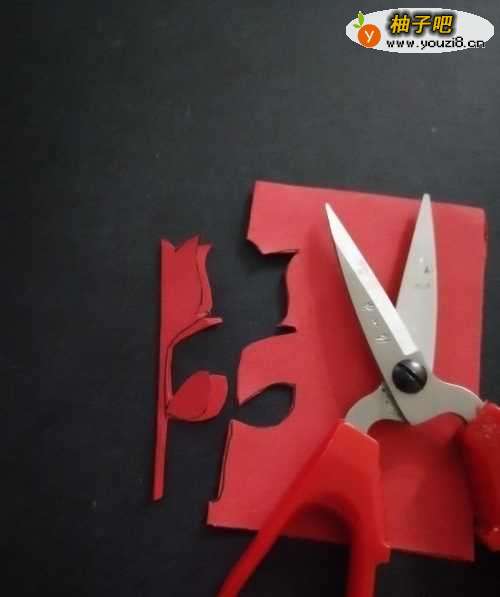 5第五步,用剪刀按照画好的玫瑰花的花纹剪裁出来。