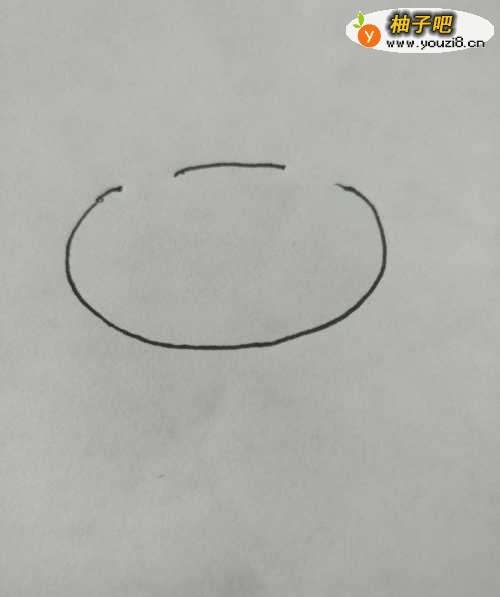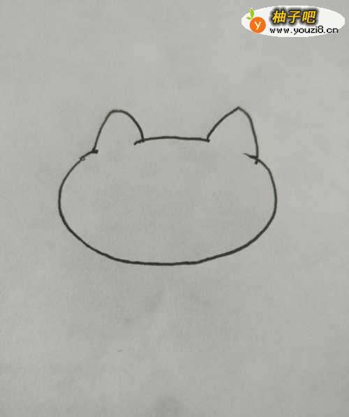 第一步,我们先画出小猫咪的头部,把耳朵部分漏出来。