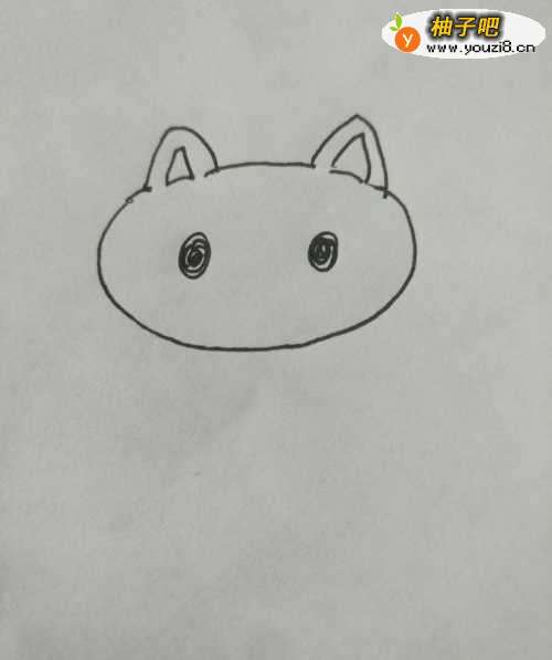 2第二步,接着把小猫咪的耳朵部分画出来。