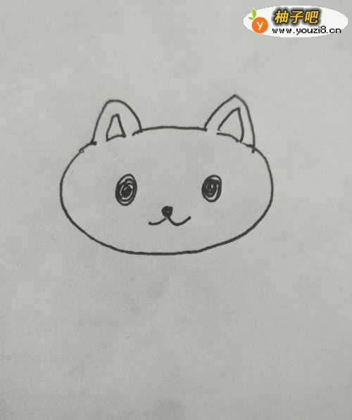 3第三步,然后把小猫咪的眼睛和鼻子画出来。