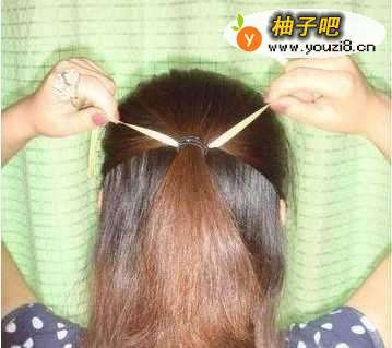 11.将头发上面1/3扎起来。
