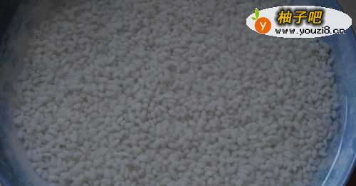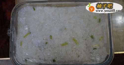 2圆粒糯米与大米混合,放入电饭锅中,加入1:1的纯净水,蒸熟成米饭,打散,加盐,葱花备用。