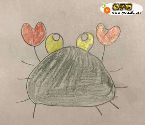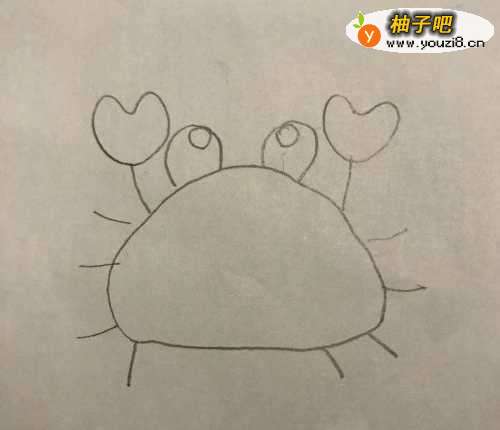 4用一个竖线和一个圆弧画出小螃蟹左右的两个大钳子,见下图
