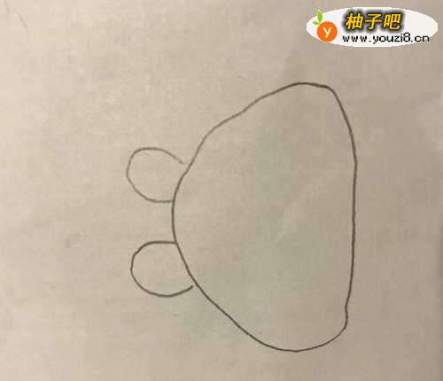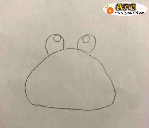 2在大馒头的上方画出2个对称的小弧线,类似耳朵的形状,作为小螃蟹的眼睛,见下图