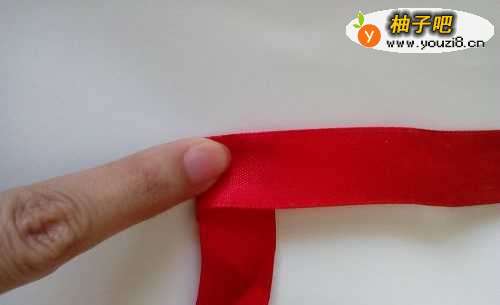 丝带对折找到中间位置,折90度。