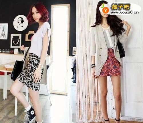 3 半身迷你裙,紧身的设计,让MM的曲线更加的性感,显瘦。显得高挑。密集的碎花和不规则的几何图纹都是这类印花裙最时尚的款哦!