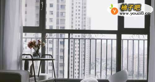 4阳台处铺一个软垫,可以当做一个不错的休闲区。大大的落地窗搭配白色窗纱,梦幻又浪漫。