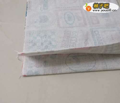 3布艺书皮第3步:反面两端对折,对齐车缝一道