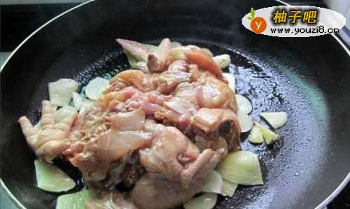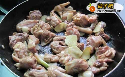 5加入腌过得鸡块炒