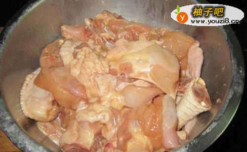 2鸡切块,用生抽,生粉,糖腌10-20分钟