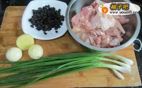 准备材料:鸡,豆豉,红葱头,姜,葱