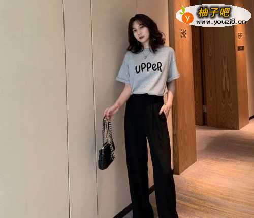 搭配二:酒红色拖地裤+黑色T恤黑色T恤是很显瘦的单品,春夏季搭配中的必备款,搭配一条酒红色拖地裤,不仅显腿长,而且很时尚。