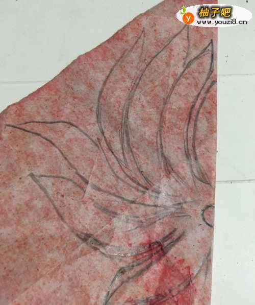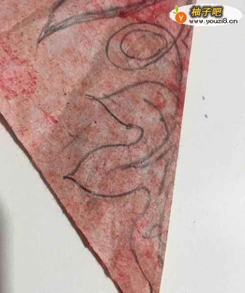 5第五步 画完之后 再有绘图铅笔 把需要剪去的部位涂实 然后拿起手工剪刀 剪去外围多余的彩纸