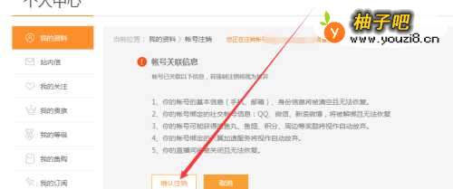 6然后,在注销界面中会出现账号关联信息,我们确认过信息后,点击【确认注销】按钮。