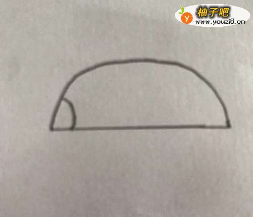 2在半圆的左侧画一个开口向左的圆弧,作为刺猬的头部,见下图