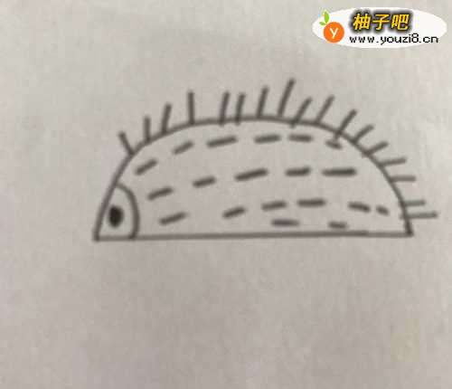 3在刺猬的头部里面画上一个实心的小圆圈,作为刺猬的眼睛,见下图