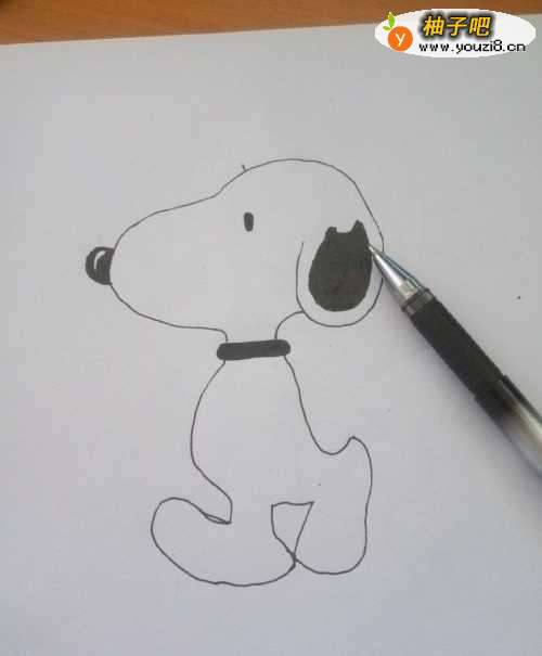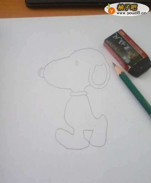 2用铅笔在白纸上大概的勾画出史努比的样子