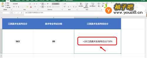 3第三步,接着用“江西美术生高考总分”乘以“50%”。