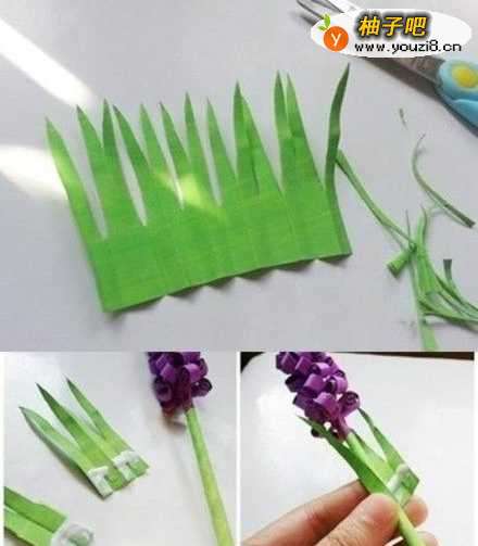 5再剪两块绿色衍纸,跟小时候折扇子那样折成下图这样