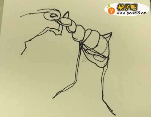 2接下来画出蚂蚁的身体,注意画出蚂蚁的肚子。
