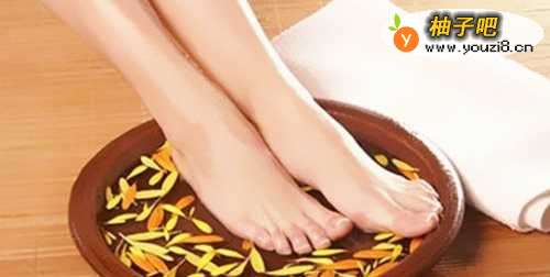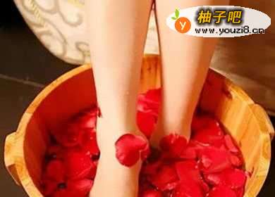 泡脚方法:最好是用新鲜的玫瑰花,按自己喜好取适量花瓣倒入干净的盘子里,用烧开的水冷却5分钟后倒入盆中,可加放精油或牛奶。泡脚的过程中可用手按摩脚部擦洗双脚,10-15分钟后,用干净毛巾将双脚擦干即可,不必再用清水冲洗。