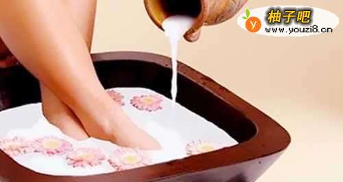 2牛奶泡脚:(牛奶)主要营养成分为:蛋白质、矿物质。其营养价值丰富,1升的鲜奶是大米的100倍,居众多食物之首。