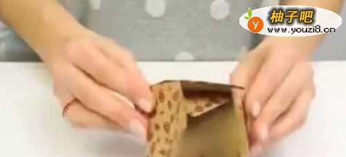 6两个角向内折,并且把他们压进盒子内。