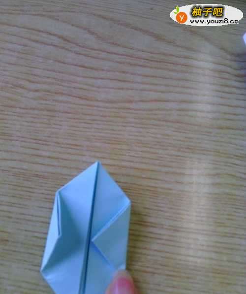 4把上面的有开口处的小三角,塞到中间大三角的缝里去,压扁
