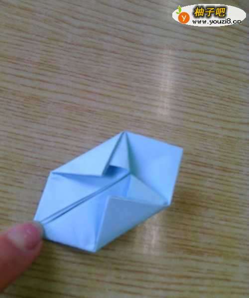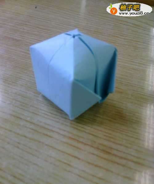 5四个角都和第一个一样塞进去,然后上下压,或者向内吹口气使它鼓起来,拉扯一下四周,使它变得立体一些,我们的小灯笼就做好了。