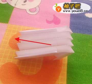 9折好后,将上边一的层纸向上拉。