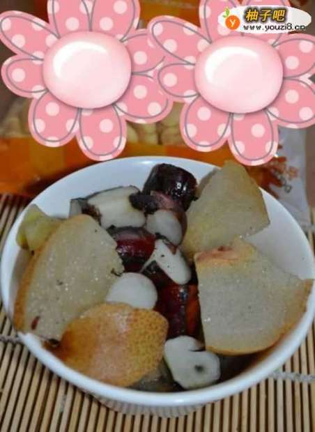 1010.可以吃些对呼吸道有利的汤食,如冰糖雪梨汤,银耳汤,荸荠,山药等。详情搜索“ 冰糖荸荠枸杞雪梨汤做法与养疗 ”。链接:http://jingyan.baidu.com/article/ce436649168f2b3772afd345.html